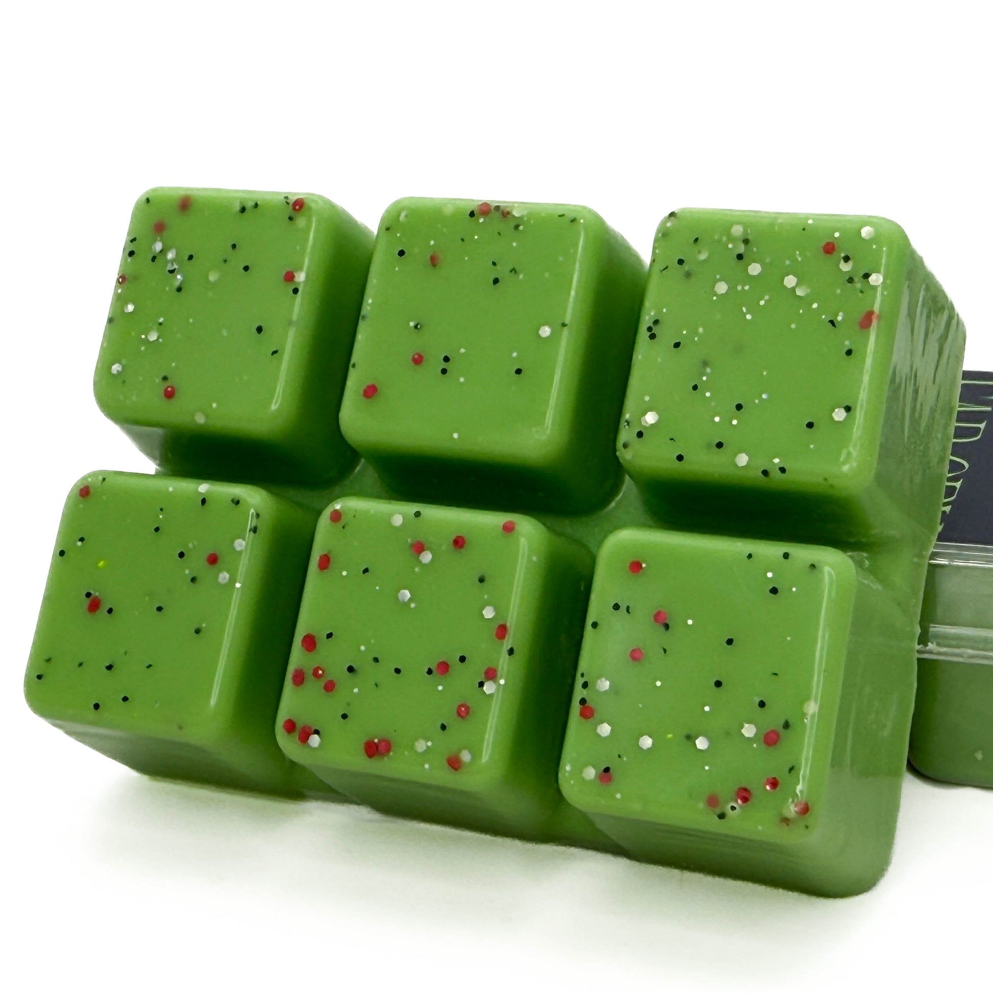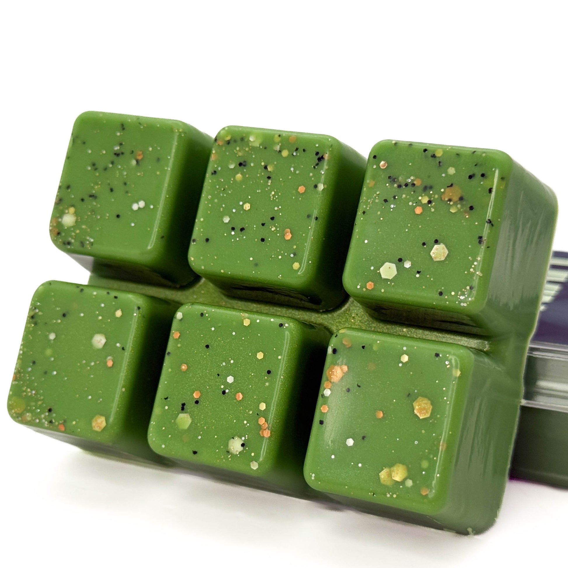 Hand-poured using a blend of soy and paraffin waxes. Decorated with biodegradable glitter made from ethically- and sustainably-sourced plant material.